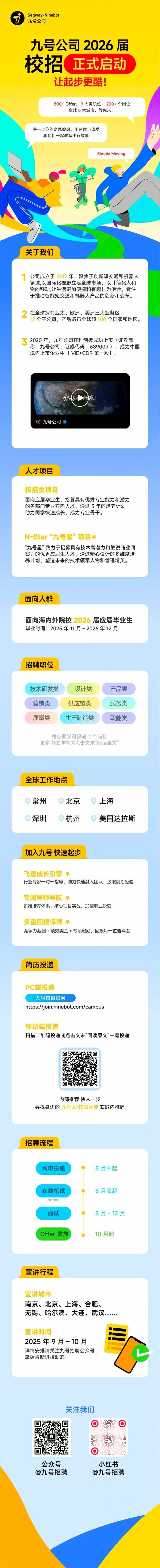 招聘单位:九号公司2026届校园招聘